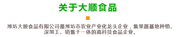 濰坊大順食品有限公司創(chuàng)建于2006年10月,位于中國(guó)出口蔬菜基地安丘市。地位置優(yōu)越,距離青島港100公里,是濰坊市農(nóng)業(yè)產(chǎn)業(yè)化龍頭企業(yè),2022年被授予國(guó)家級(jí)高新技術(shù)企業(yè),2024年被授予省“專精特新中小企業(yè)”。公司通過(guò)了歐盟BRC質(zhì)量體系認(rèn)證,ISO9000認(rèn)證,清真HALAL認(rèn)證。公司占地面積26680㎡,員工190人,主要制造、銷售VF果蔬脆片、FD凍干果蔬、香菇素牛肉、黑蒜等產(chǎn)品,年產(chǎn)能6000噸,創(chuàng)匯1000萬(wàn)美元!